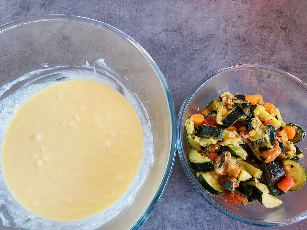Mélanger les légumes bien égouttés à l’appareil à flan, verser dans un moule à cake et enfourner pendant 25 minutes.